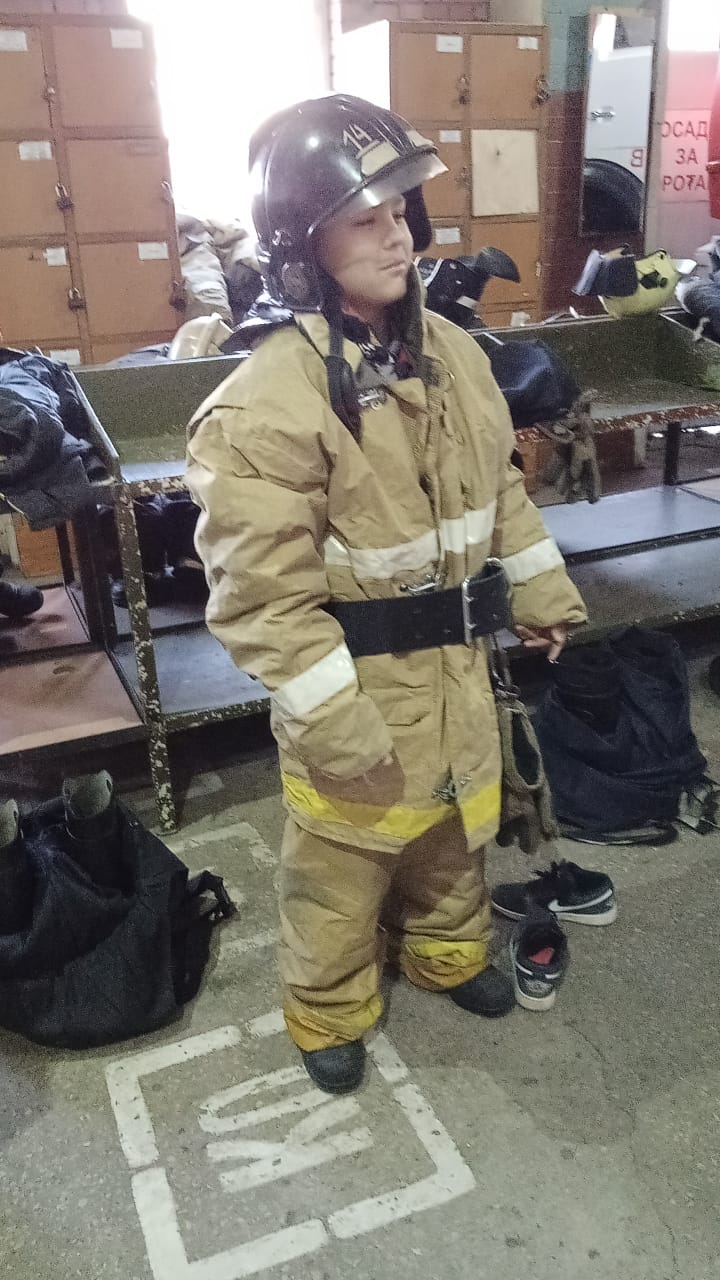 Визжали от радости мальчишки громче пожарной сирены, когда их прокатили на пожарной машине! Смельчаки одевались на время в облачение пожарного. Было весело, но в норматив семиклассники не уложились. Сотрудник МЧС должен успеть одеться за 1 минуту!