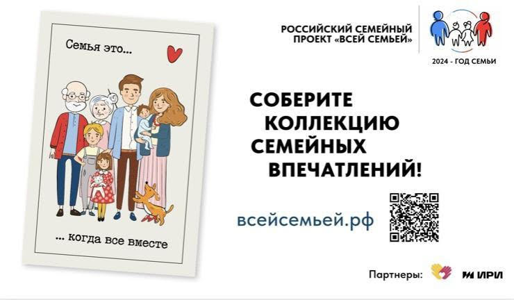 Жителей Владимирской области приглашаем к участию в новом большом семейном проекте. Проект приурочен к объявленному Президентом Владимиром Путиным Году семьи. Присоединиться к конкурсу очень просто : пройти регистрацию в группе проекта в ВК https://clck.ru/378MHs или в Одноклассниках https://clck.ru/378SQC, написать в чат-бот проекта (https://clck.ru/3788FS или https://clck.ru/3788FT) о готовности принять участие и приступить к выполнению конкурсных заданий. За каждое выполненное задание семья будет получать электронный вкладыш из уникальной коллекции «Семья – это…», созданной специально для проекта российскими художниками. Когда семья выполнит все задания, она соберёт полную коллекцию иллюстраций. Раз в месяц для всех семей-участниц проходить розыгрыши призов в группах конкурса, а спустя несколько месяцев по итогам всего проекта самые активные и дружные семьи получат подарки. Присоединяйтесь! Давайте покажем, что во Владимирской области самые активные и дружные семьи!