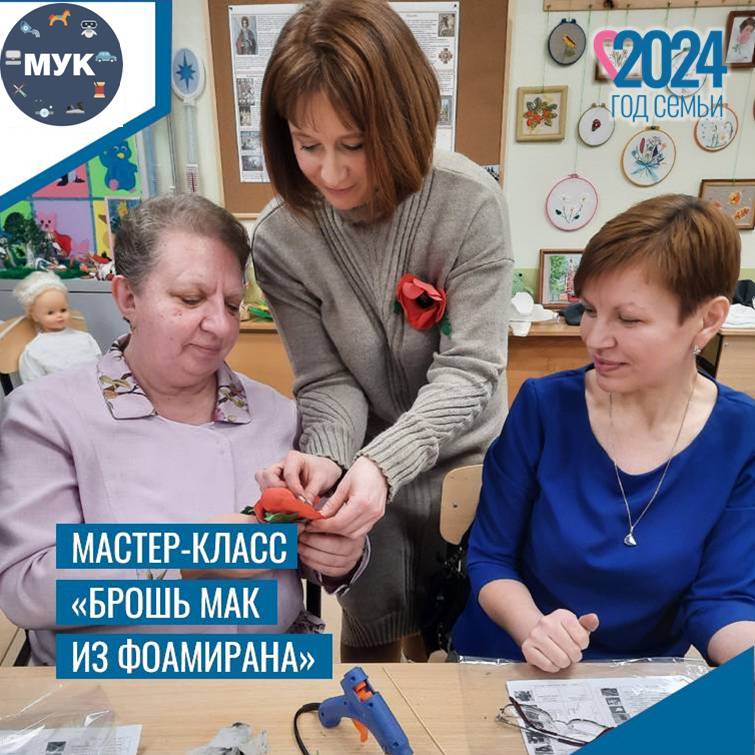 учитель МБОУ МУК Денисова Анастасия Васильевна провела мастер-класс на тему: «Работа с фоамираном–Брошь мак»
