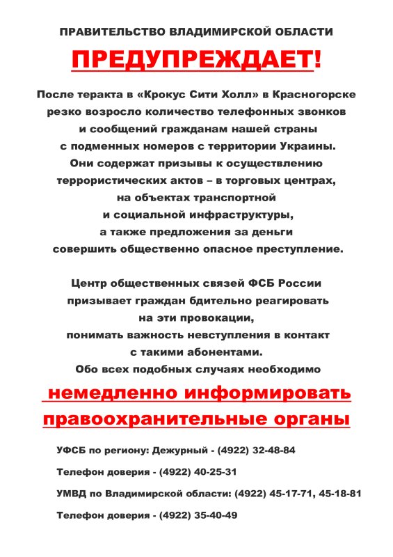 ПРАВИТЕЛЬСТВО ВЛАДИМИРСКОЙ ОБЛАСТИ ПРЕДУПРЕЖДАЕТ!