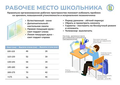 Помните, что правильно организованное место школьника поможет избежать проблем со зрением, позвоночником и повышенной утомляемостью.