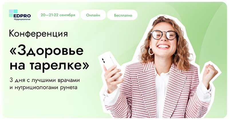Учебный центр EDPRO Academy приглашает на бесплатную 3-дневную онлайн-конференцию "Здоровье на тарелке", которая состоится с 20 по 22 сентября 2024 года.