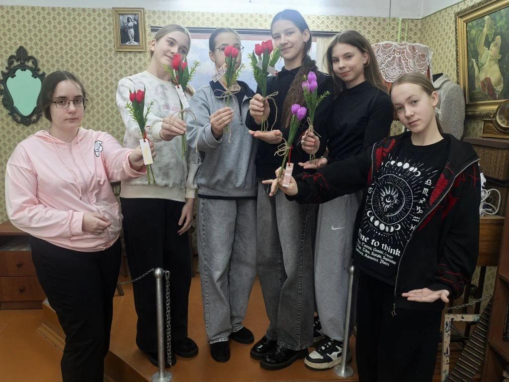 8 марта - замечательный весенний день и повод порадовать своих мамочек. Именно к этому празднику ученицы межшкольного учебного комбината под руководством учителя Седовой Н. А. подготовили подарки в виде нежных букетов тюльпанов, выполненных из гофрированной бумаги. Девочки на своих букетах разместили тёплые сердечные пожелания своим мамам.