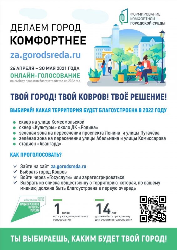 в случае низкой активности горожан при отборе территорий через данный портал денежные средства на благоустройство общественных пространств в рамках Национального проекта «Жилье и городская среда» выделяться не будут!