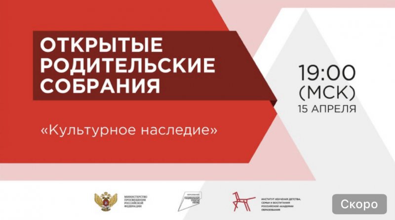 Культурному наследию будет посвящено предстоящее Всероссийское родительское собрание, которое состоится 15.04.2022 года в 19.00