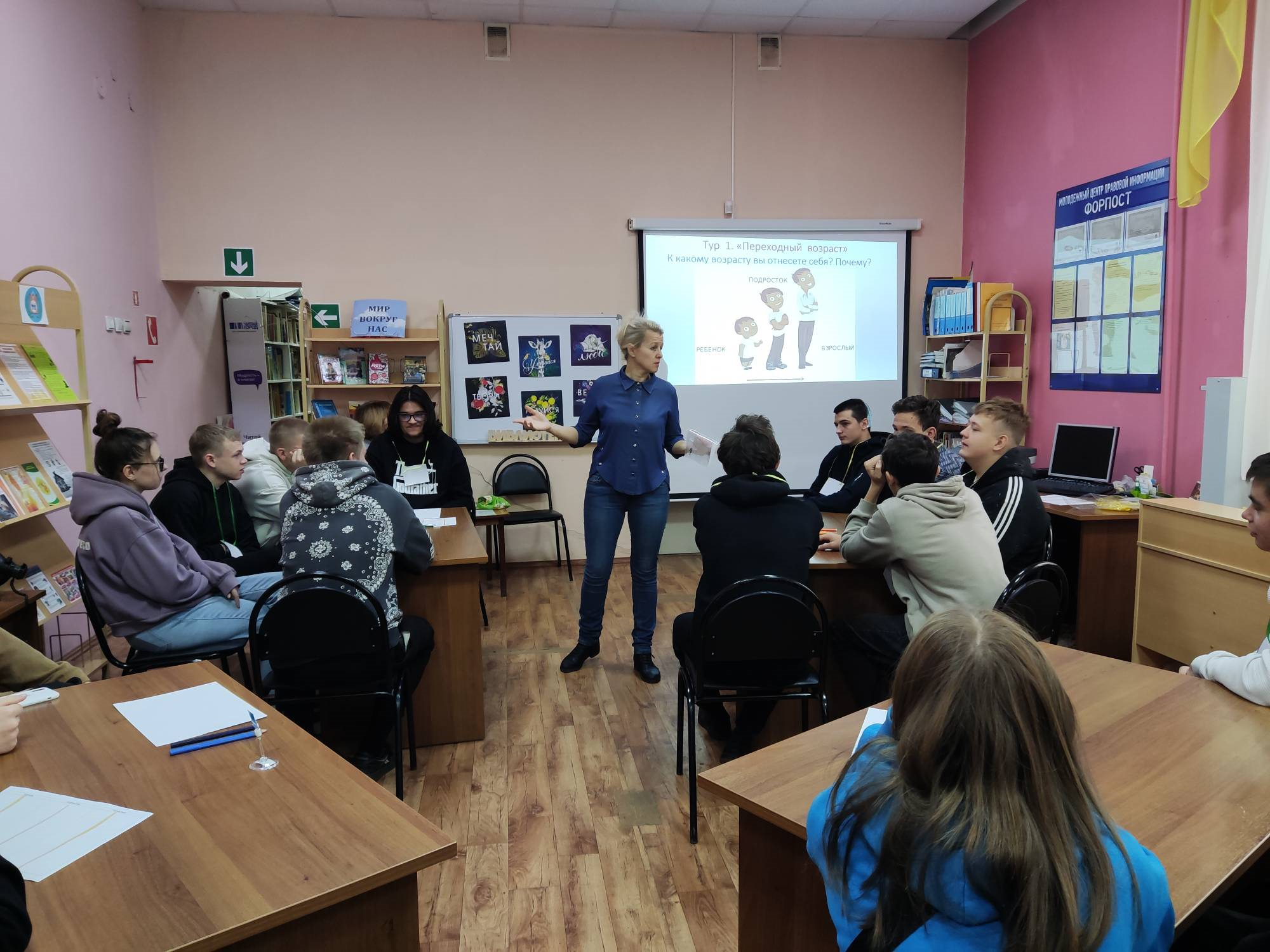 28 октября на базе городской библиотеки №7 для студентов ковровского промышленно-гуманитарного колледжа был проведен интеллектуальный тимбилдинг «Право на ЖИЗНЬ». В качестве организаторов выступили сотрудники библиотеки и методист городского кабинета наркопрофилактики МБОУ МУК Ободьева Ирина Алексеевна.