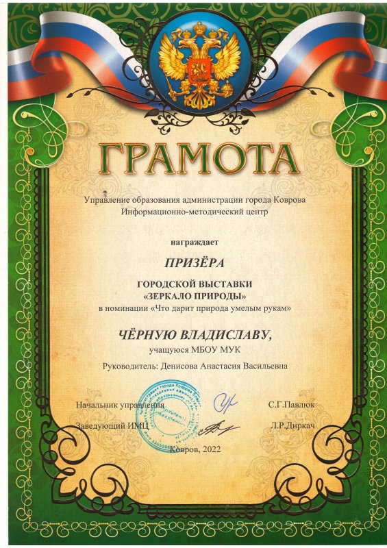 В период с 8 сентября по 20 октября 2022 года управлением образования администрации г.Коврова проведена городская выставка «Зеркало природы», в которой приняли участие 486 обучающихся и педагогов образовательных учреждений города.