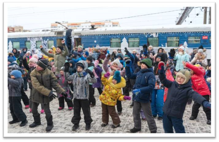 Программой мероприятия предусмотрено посещение поезда, массовое мероприятие на перроне вокзала.