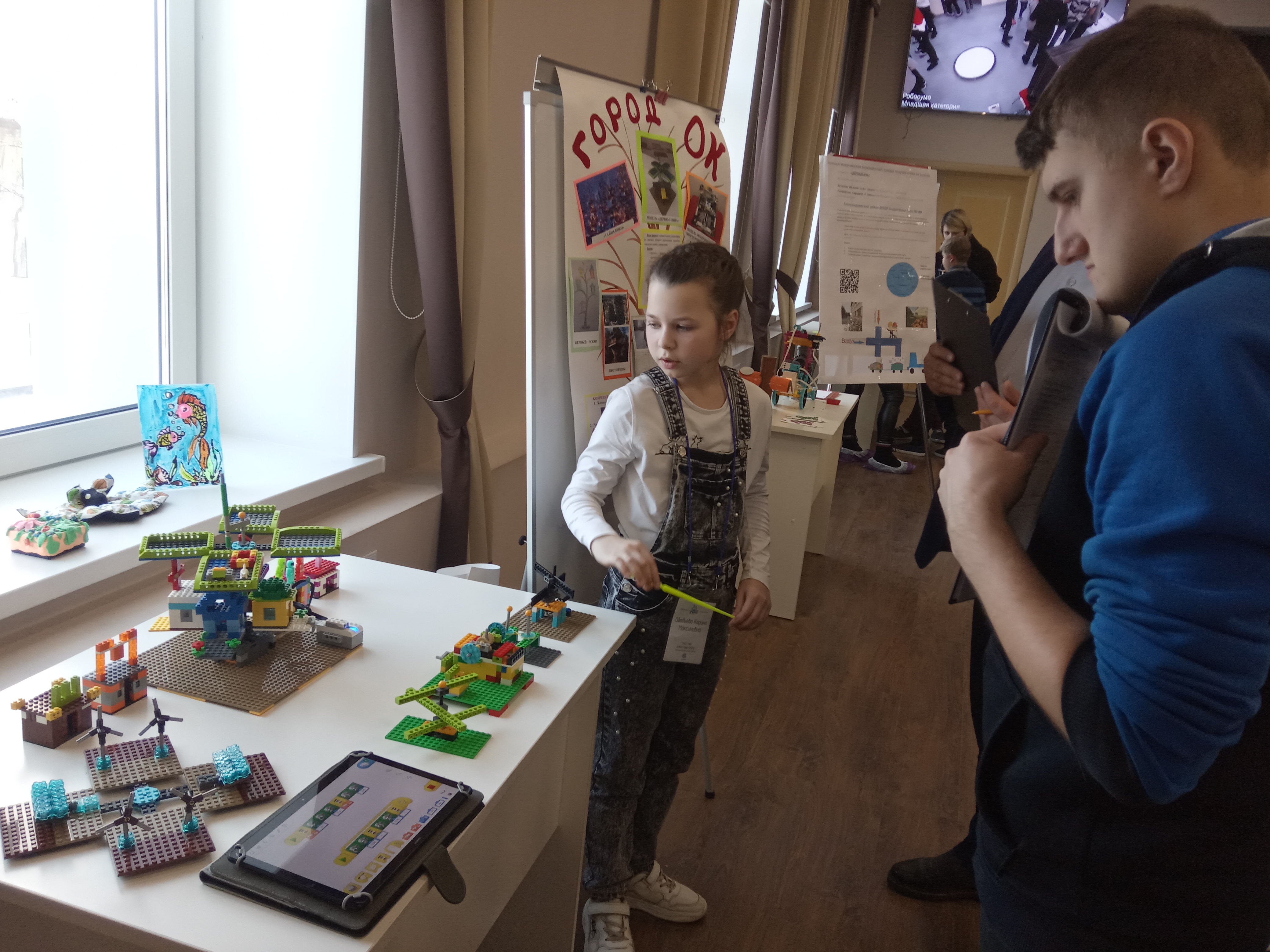 Результаты кропотливой работы над моделью, презентацией, демонстрационным баннером были представлены компетентному жюри. Подробные вопросы судей заставили задуматься и над конструкцией, и над назначением робо-моделей. Родившиеся в процессе обсуждения идеи задали вектор дальнейшего развития проектов ребят.