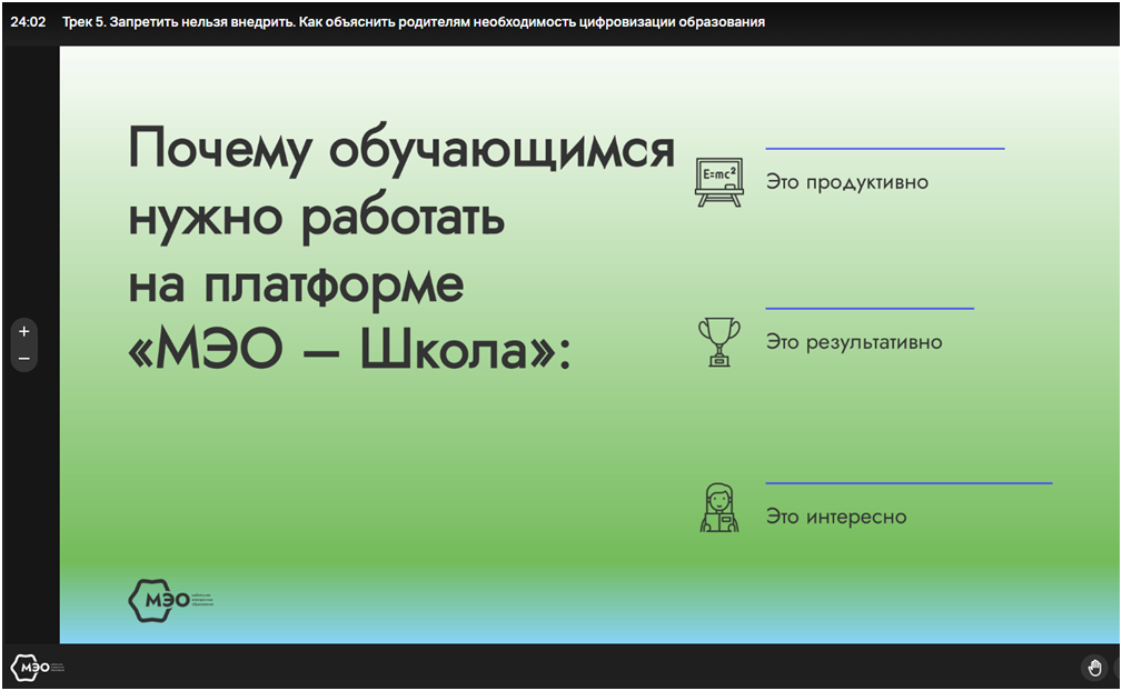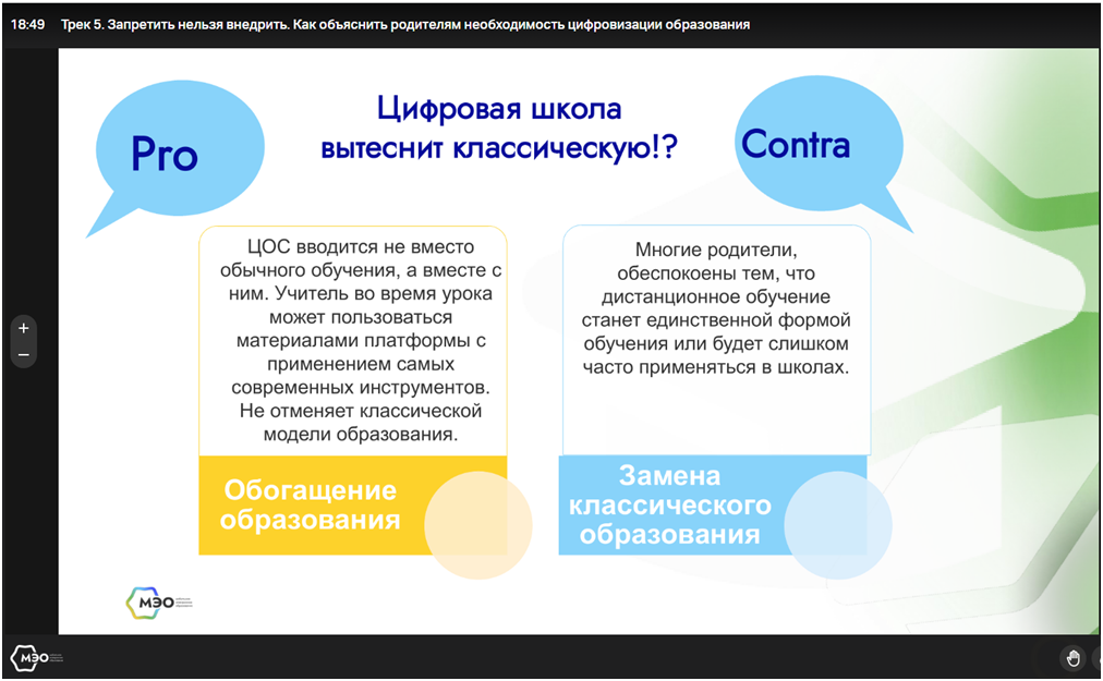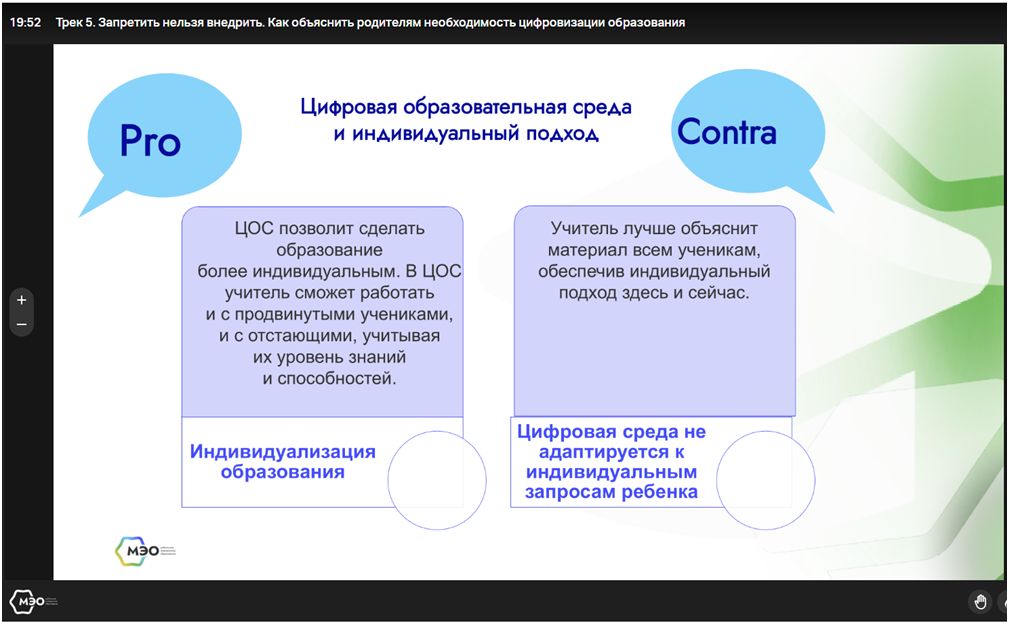 Кроме того, цифровизация касается не только учебных процессов, но и организационных. Например, те же электронные дневники и журналы, а также возможность написать учителю электронное сообщение вместо того, чтобы звонить или приходить в школу лично, - это тоже цифровизация.