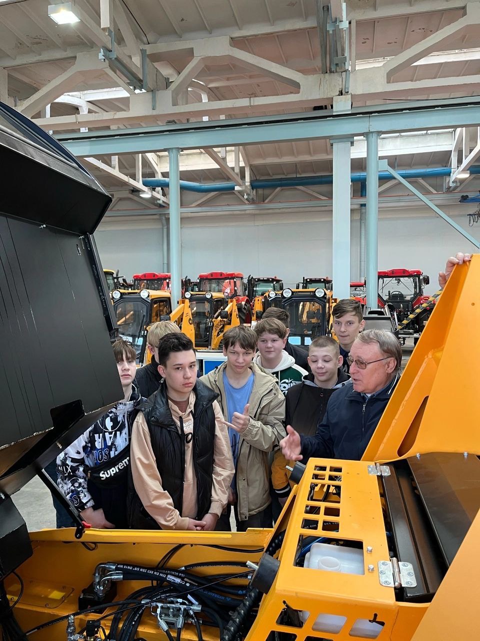 13 и 14 апреля ребята из школы № 18 посетили участок производства тракторов, увидели опытные образцы радиоуправляемых погрузчиков, которые могут работать в зоне боевых действий, в условиях радиоактивного заражения, собирать осколки на минных полях.